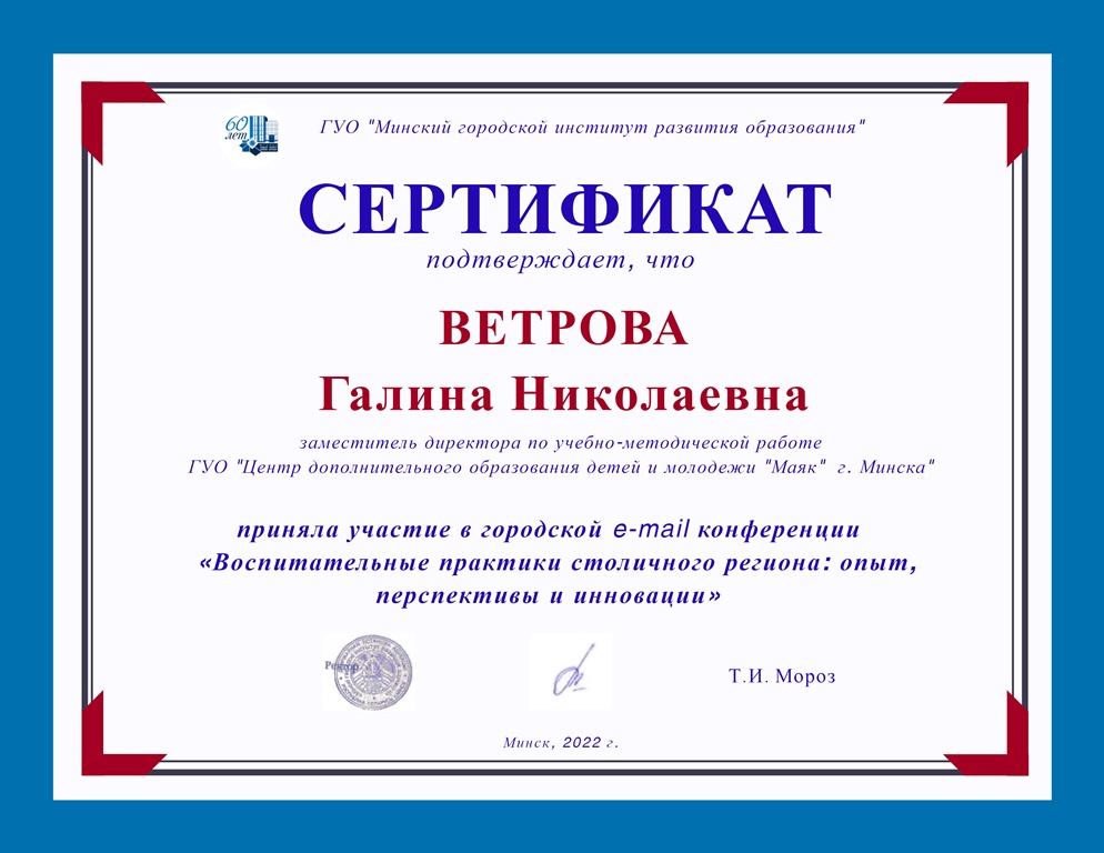 03.03.2022ГУО «Центр дополнительного образования детей и молодёжи «Маяк» г.Минска» принял участие в городской е-mail-конференции на тему «Воспитательные практики столичного региона: опыт, перспективы и инновации».