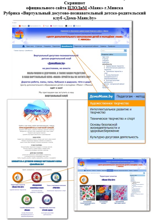 В рамках конференции заместитель директора по учебно-методической работе Ветрова Галина Николаевна поделилась опытом использования возможностей интернет-пространства в работе с законными представителями обучающихся, эффективными формами и методами воспитания в практике дистанционного взаимодействия учащихся и педагогов, представив материалы «Из опыта деятельности виртуального досугово-познавательного детско-родительского клуба «ДомаМаяк.by».
