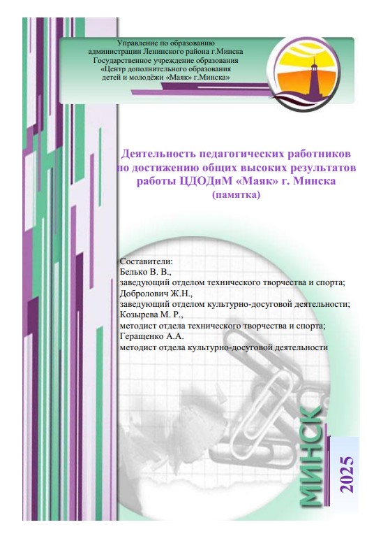 Деятельность педагогических работников по достижению общих высоких результатов работы ЦДОДиМ «Маяк» г. Минска